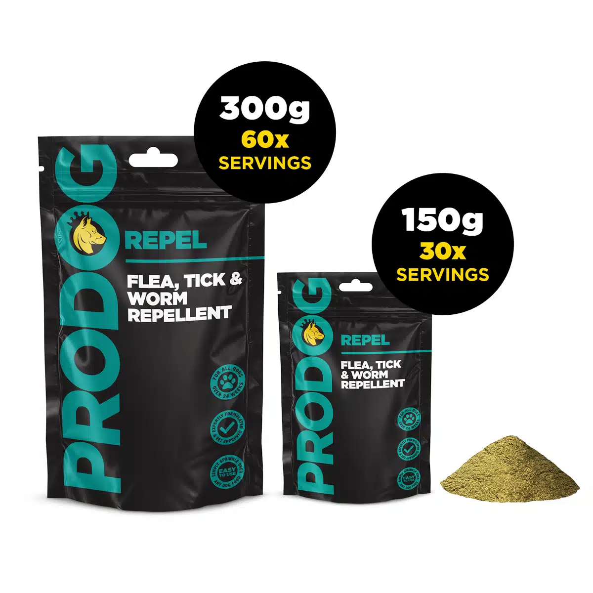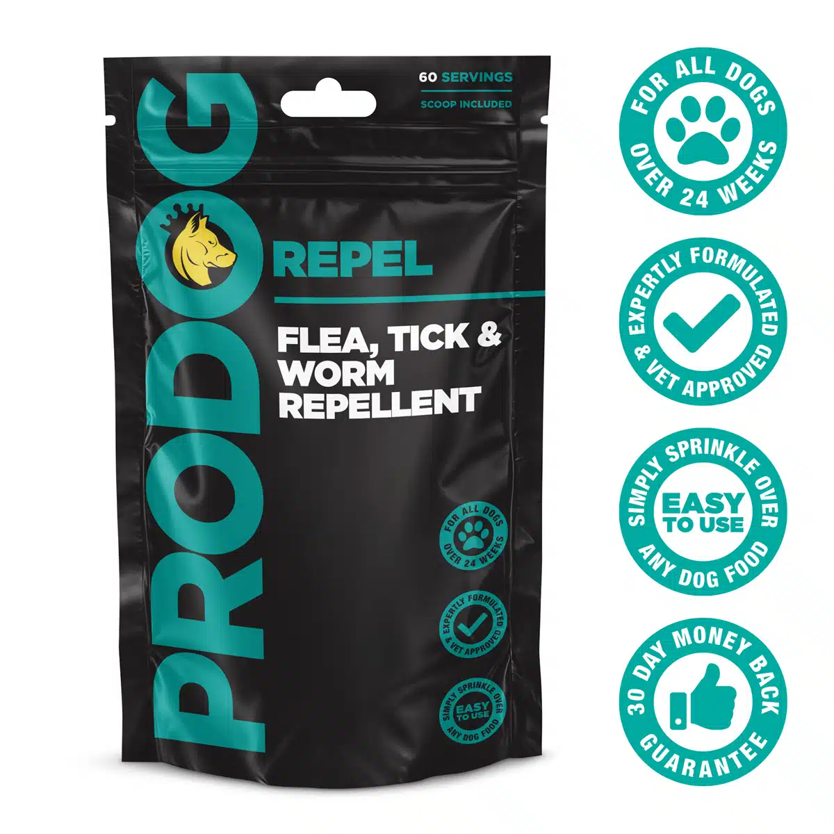 ProDog’s Repel is a vet approved, expertly formulated natural flea repellent for dogs, not a chemical product, but a food-based supplement designed to support your dog’s natural defences against fleas, ticks and worms.