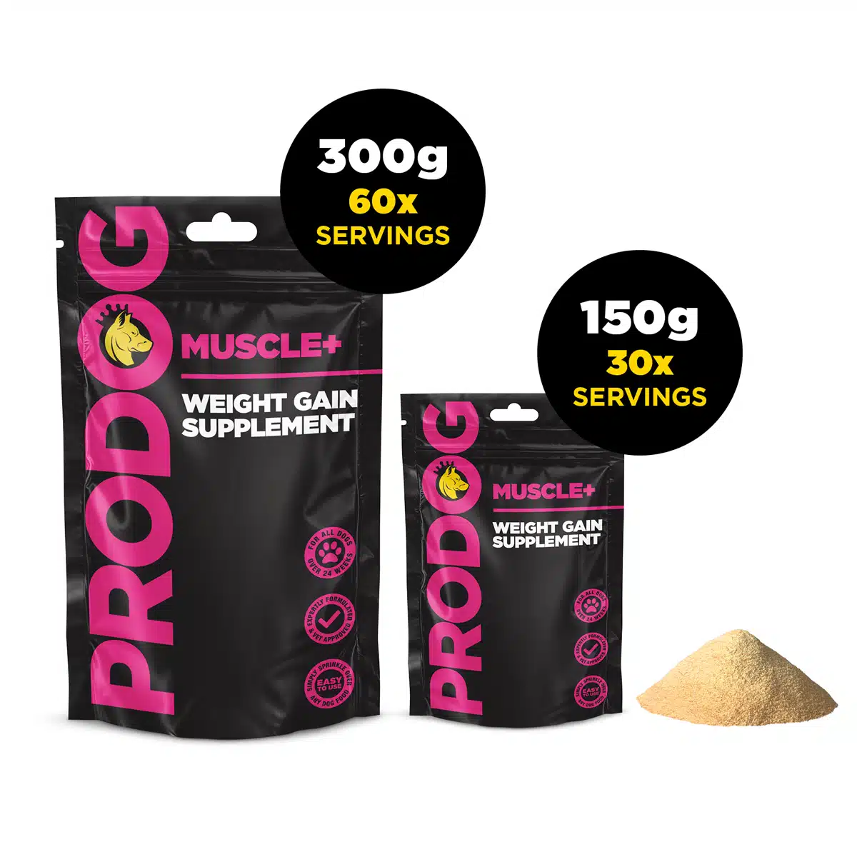 ProDog’s best selling, high-specification weight gainer for dogs, expertly formulated for healthy muscle gain and weight gain. This vet approved supplement delivers a powerful 76% premium protein per scoop, using a blend of high quality, bioavailable ingredients. Ideal for dogs needing to reach a desirable weight in a safe and healthy way or requiring a dog muscle builder to support recovery, maintain weight, or optimise condition. Simply mix into any meal—perfect for even the fussiest eaters.