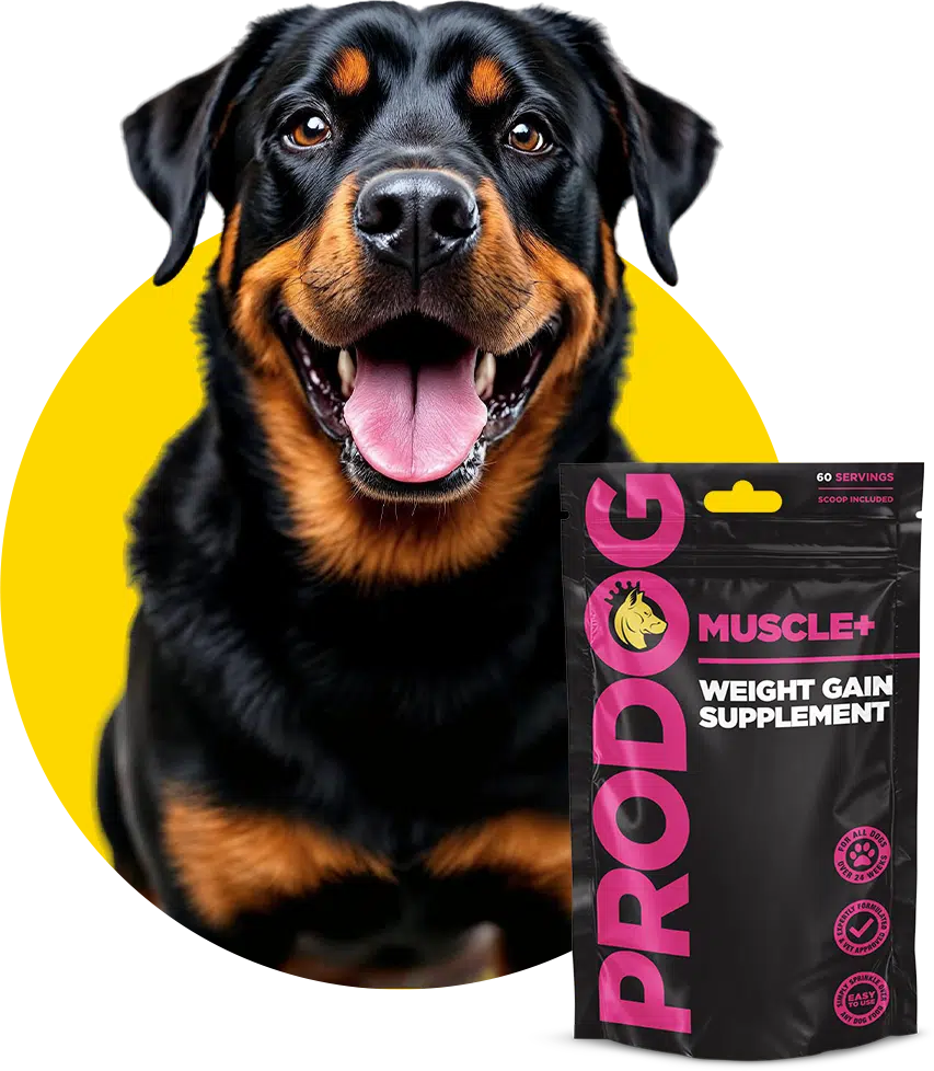 To take results further, adding a targeted dog muscle builder like ProDog Muscle+ can help. With 76% quality protein per scoop and zero fillers, this protein powder for dogs supports muscle gain through nutrient-dense, natural ingredients such as hemp, pea, and kelp.