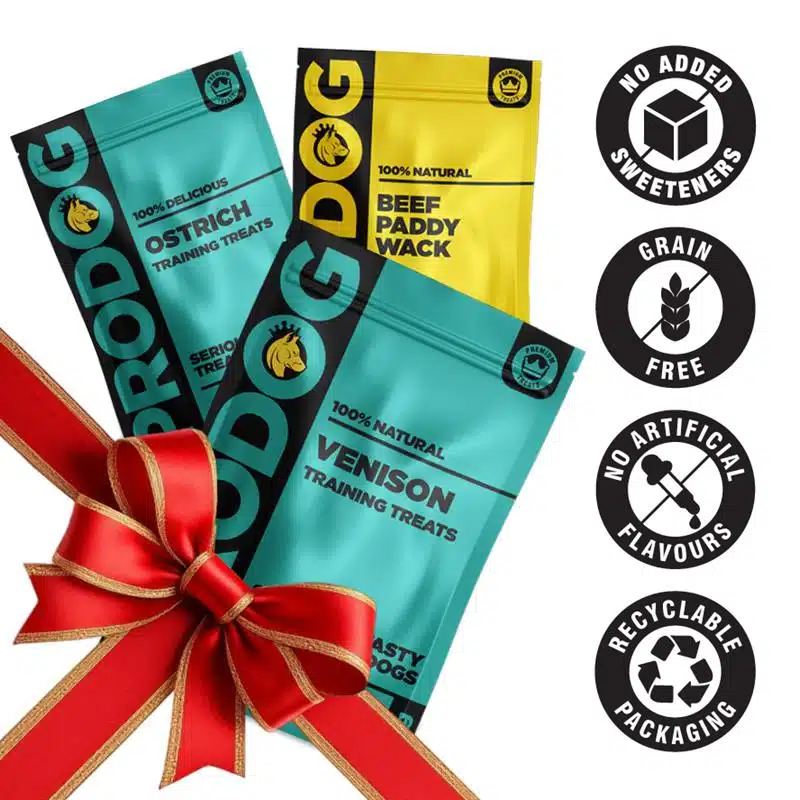 This limited edition festive bundle gives you everything needed to spoil them properly. Combining high-reward training bites, everyday indulgence, and longer-lasting chews, it’s designed for all dogs over 12 weeks who deserve real, quality rewards they’ll actually go wild for this Christmas.