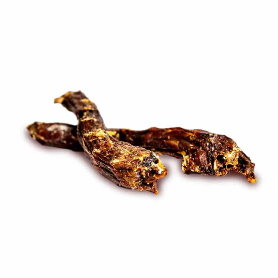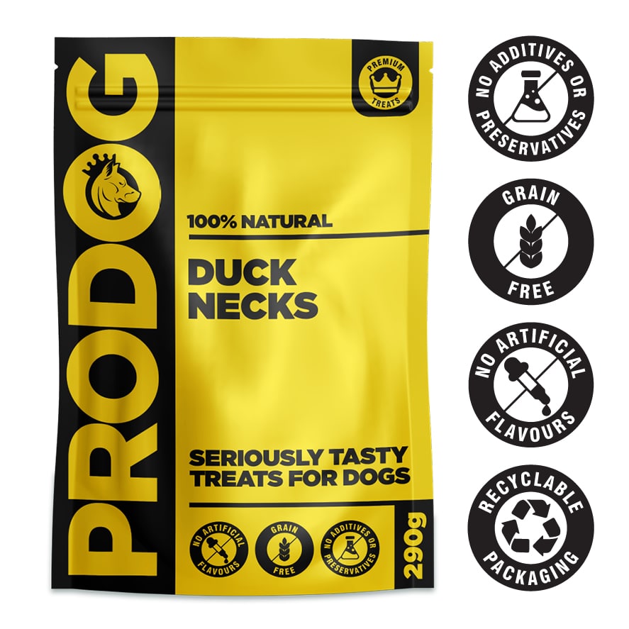Pure, all natural dog treats made from 100% air-dried duck neck — nothing added. Bursting with natural flavour and a satisfying bite, they help support dental health in puppies and small to medium sized dogs, while and delivering a tasty protein boost or healthy snack for larger dogs of all ages. This single-protein option is versatile, nutritious, and loved by even the fussiest eaters.