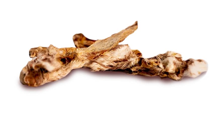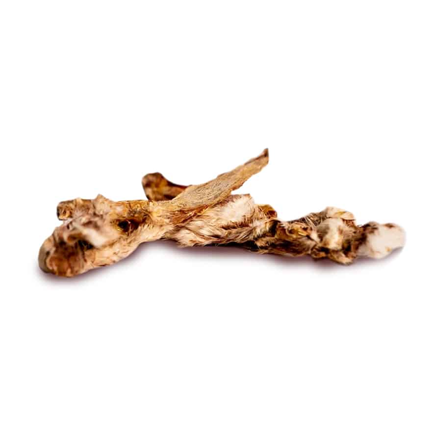Pure, all natural dog chews made from 100% air-dried rabbit ear, nothing added. Protein-rich, fibre-packed, and fur that helps cleanse the gut naturally.