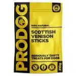 High-value, pure meat, natural dog treats made from 100% air-dried venison, nothing added. Irresistibly tasty sticks with a naturally chewy texture. A satisfying, longer-lasting chew for puppies and small dogs, yet high-value and rewarding enough for training or healthy snacking with dogs of all sizes and ages, even the fussiest eaters.