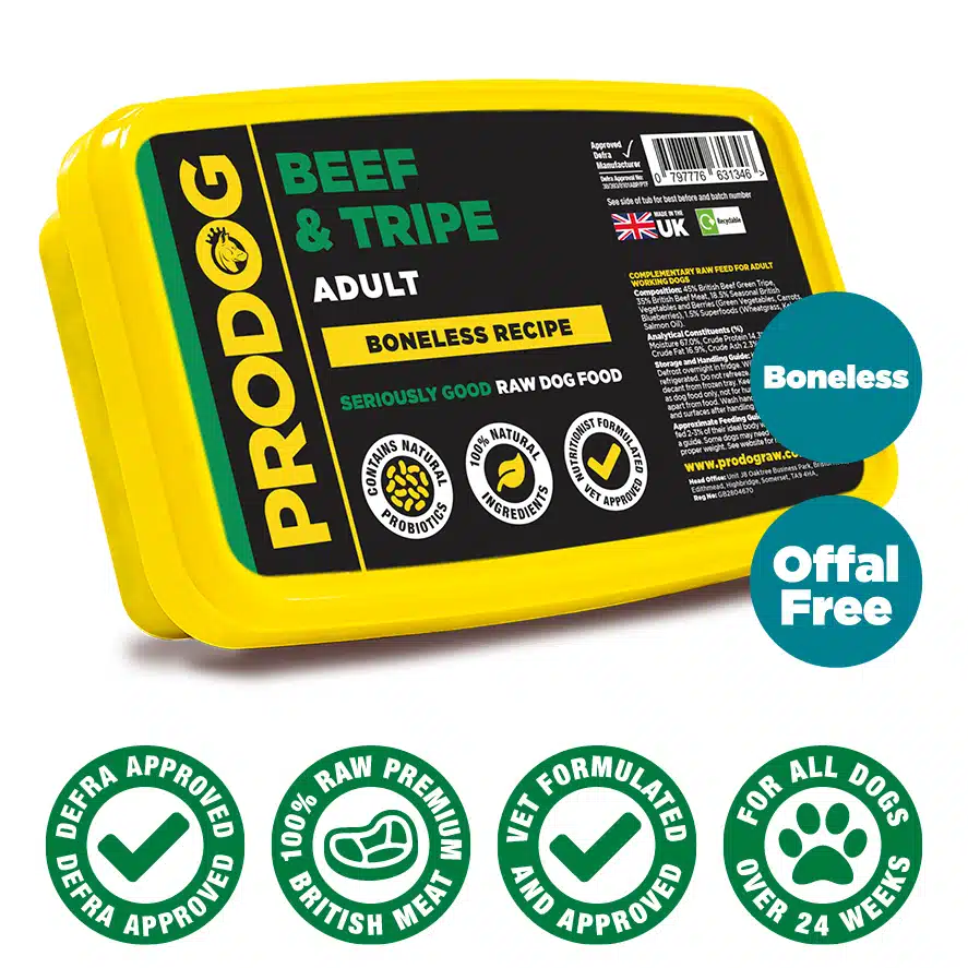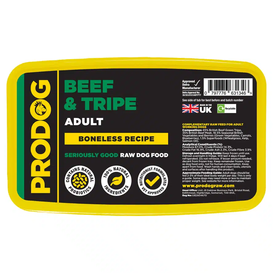 ProDog Beef & Green Tripe raw dog food is a raw meat product and should be handled observing standard hygiene rules.