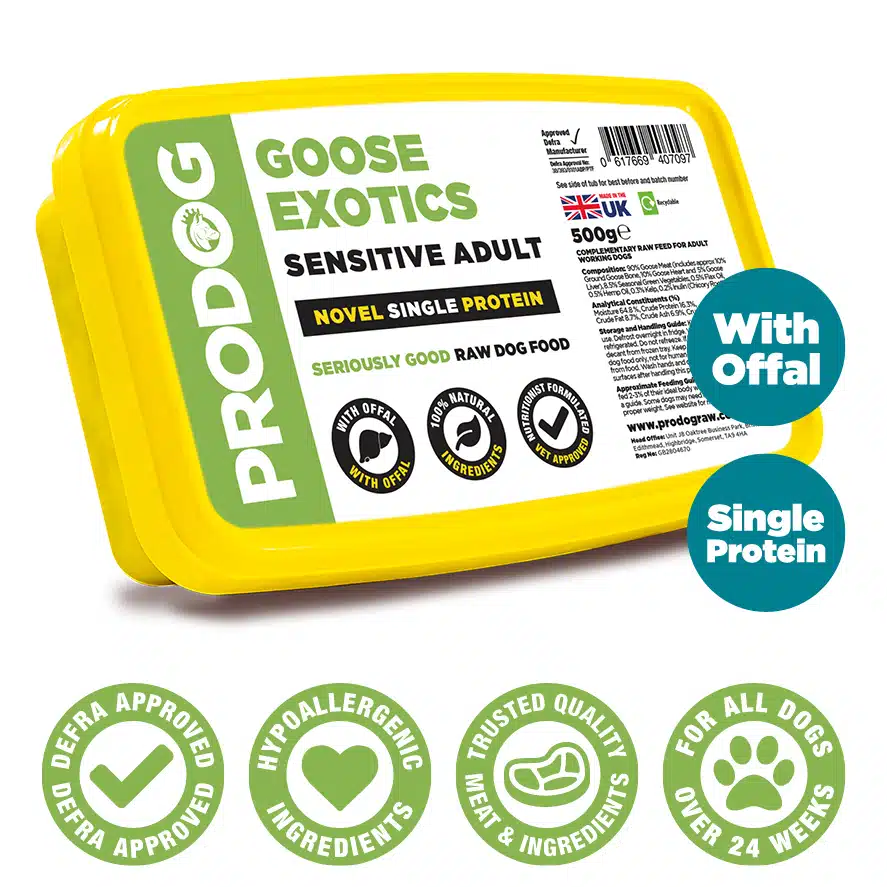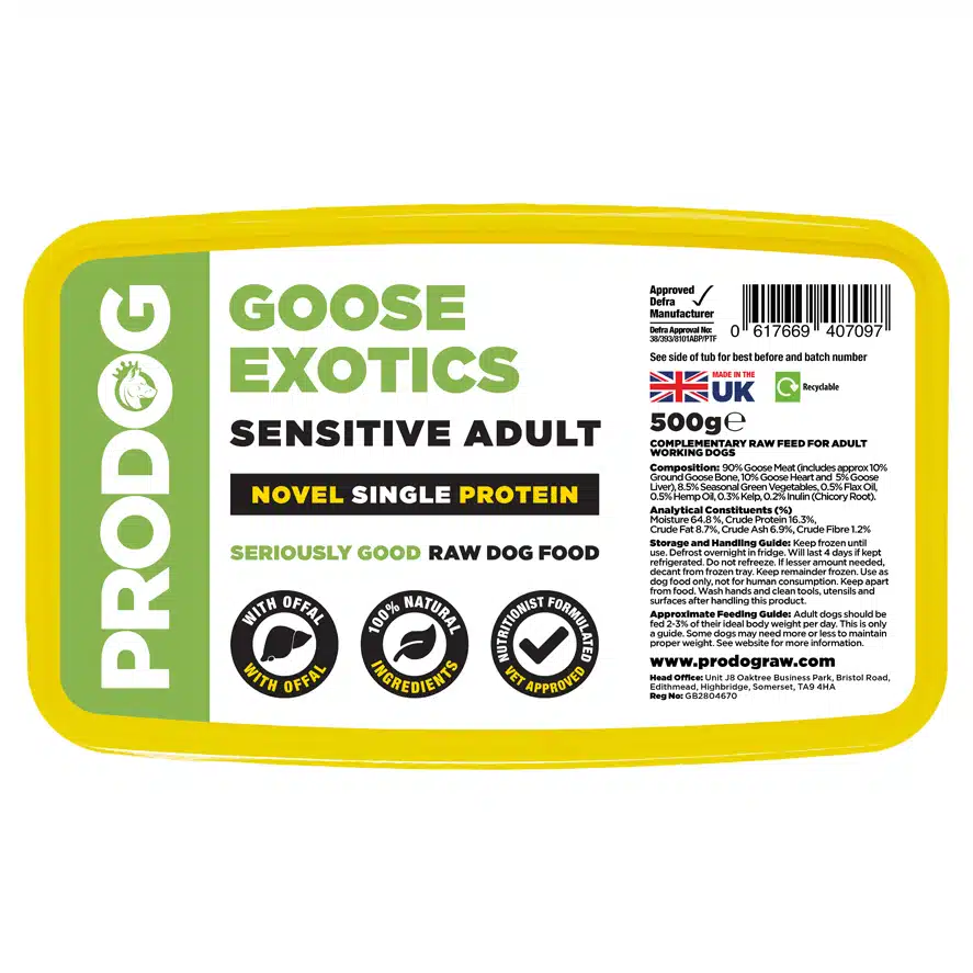 ProDog Goose & Offal raw dog food is a human-quality, raw meat product and should be handled observing standard hygiene rules.