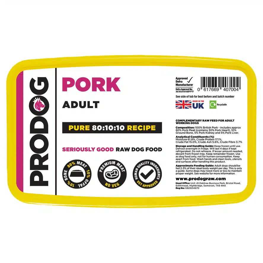 ProDog Pure Pork raw dog food is a raw meat product and should be handled observing standard hygiene rules.