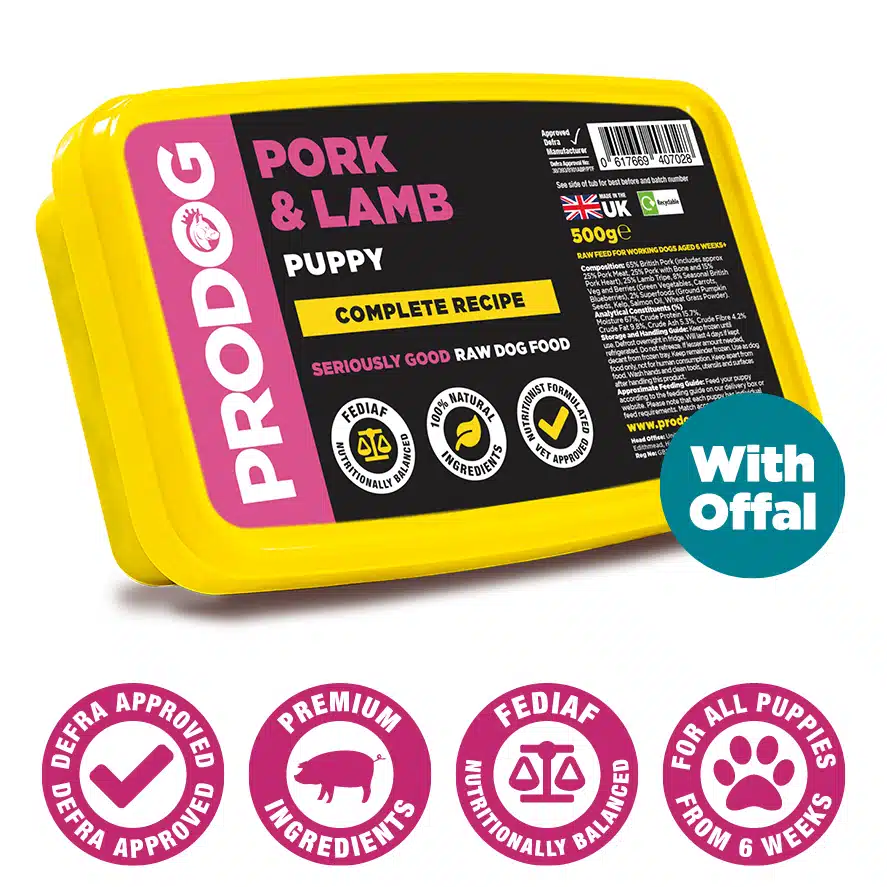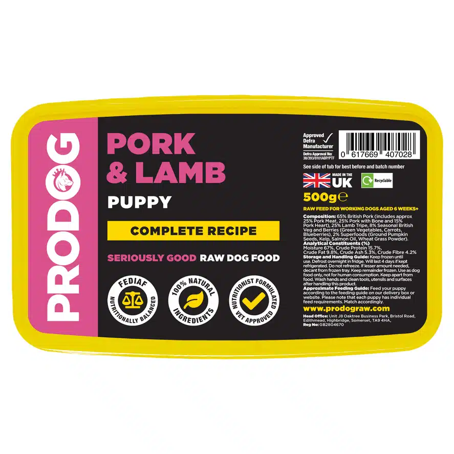 ProDog Pork & Lamb raw puppy food is a raw meat product and should be handled observing standard hygiene rules.