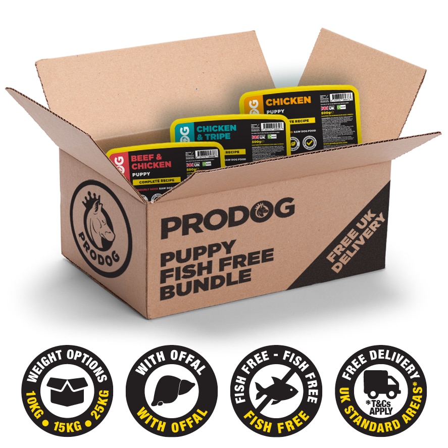 Give your pup the best possible start without fish in the mix. This bundle features a selection of non-fish complete raw puppy food recipes, crafted to FEDIAF standards using 100% fresh, natural ingredients. Formulated by canine nutritionists and vet approved, these meals deliver balanced, growth-focused nutrition in a finely minced consistency — perfect for small mouths and developing bodies.