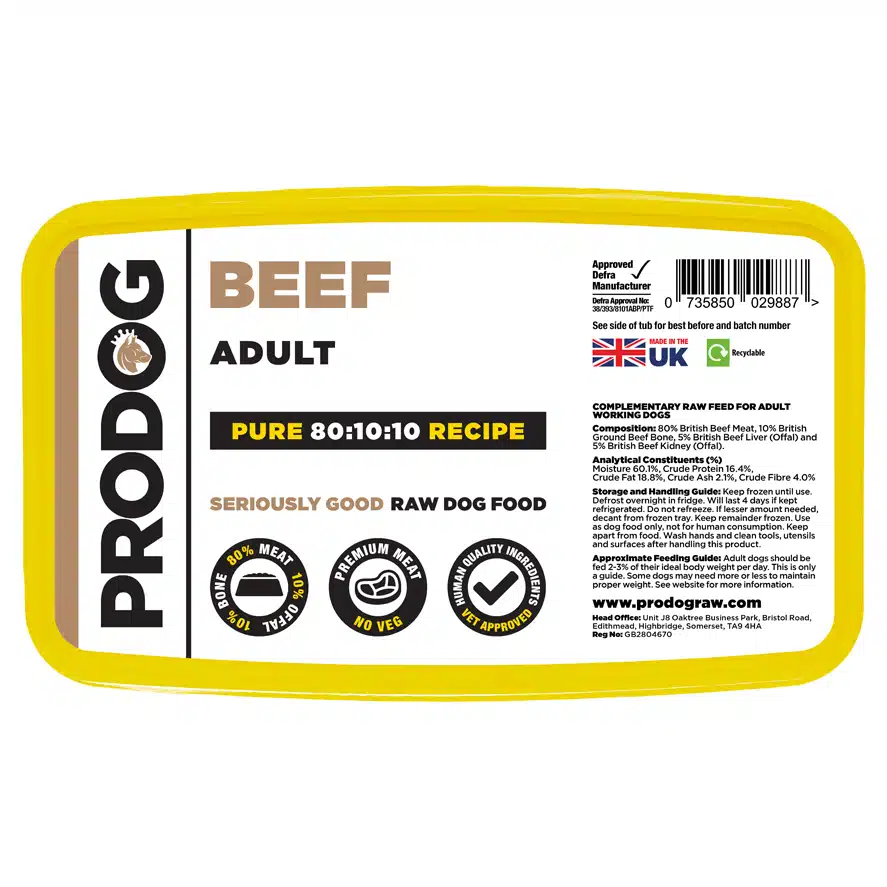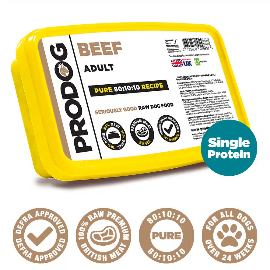 ProDog Pure Beef raw dog food is a raw meat product and should be handled observing standard hygiene rules.