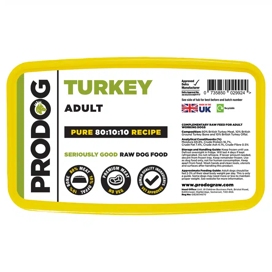 ProDog Pure Turkey raw dog food is a raw meat product and should be handled observing standard hygiene rules.