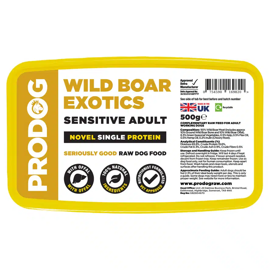 ProDog Wild Boar & Offal raw dog food is a human-quality, raw meat product and should be handled observing standard hygiene rules.